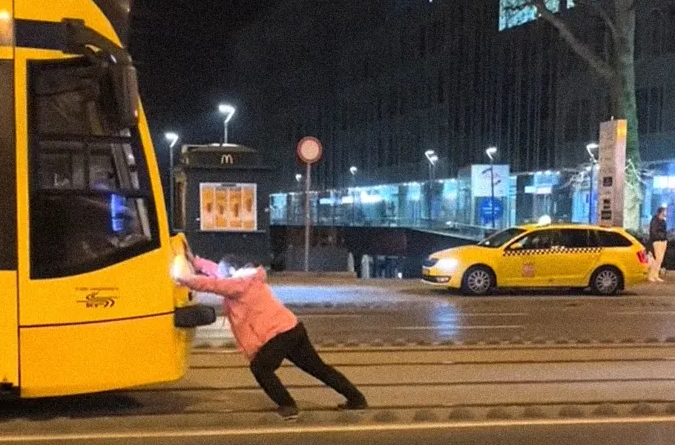 Ehelyett egy magyar, valamiért zakkant férfi a Nyugatinál a villamos elé állt. Maga sem tudja, miért.