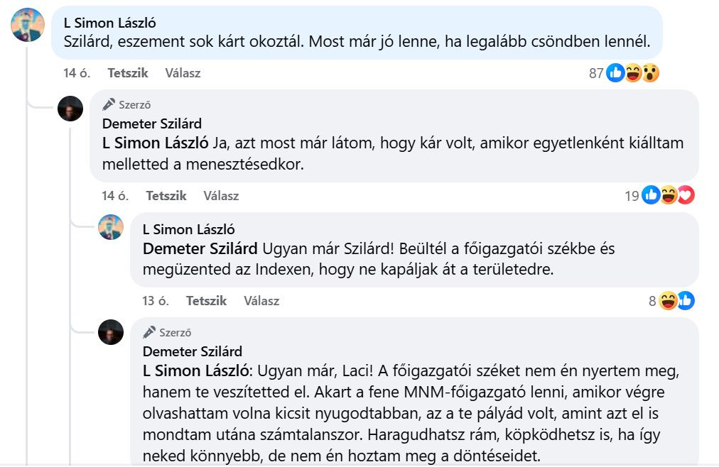 Ez alá a poszt alá érkezett meg L. Simon László, szintén író, akit Demeter váltott a Nemzeti Múzeum élén